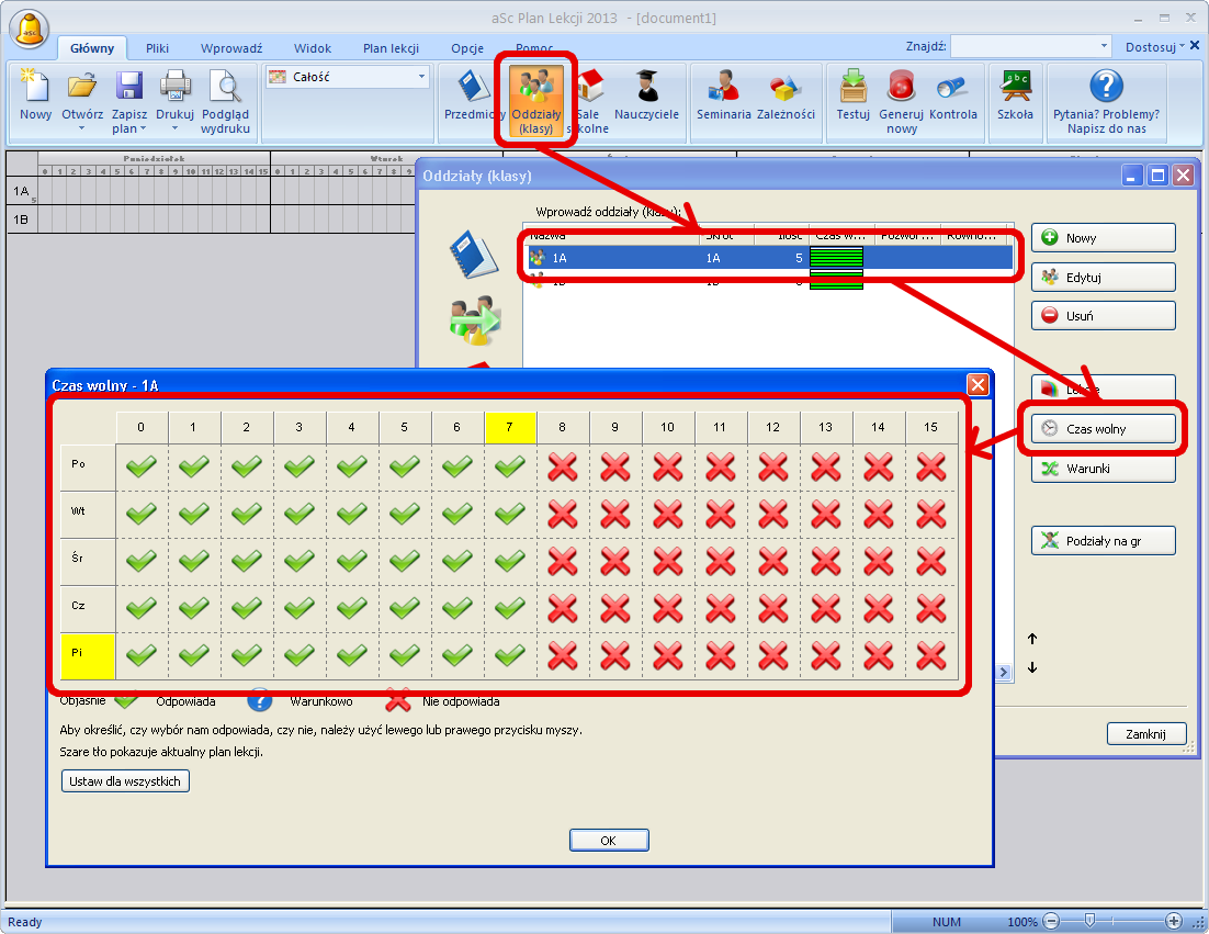 Dla każdej klasy godziny wolne (poranne bądź popołudniowe) muszą zostać określone indywidualnie.