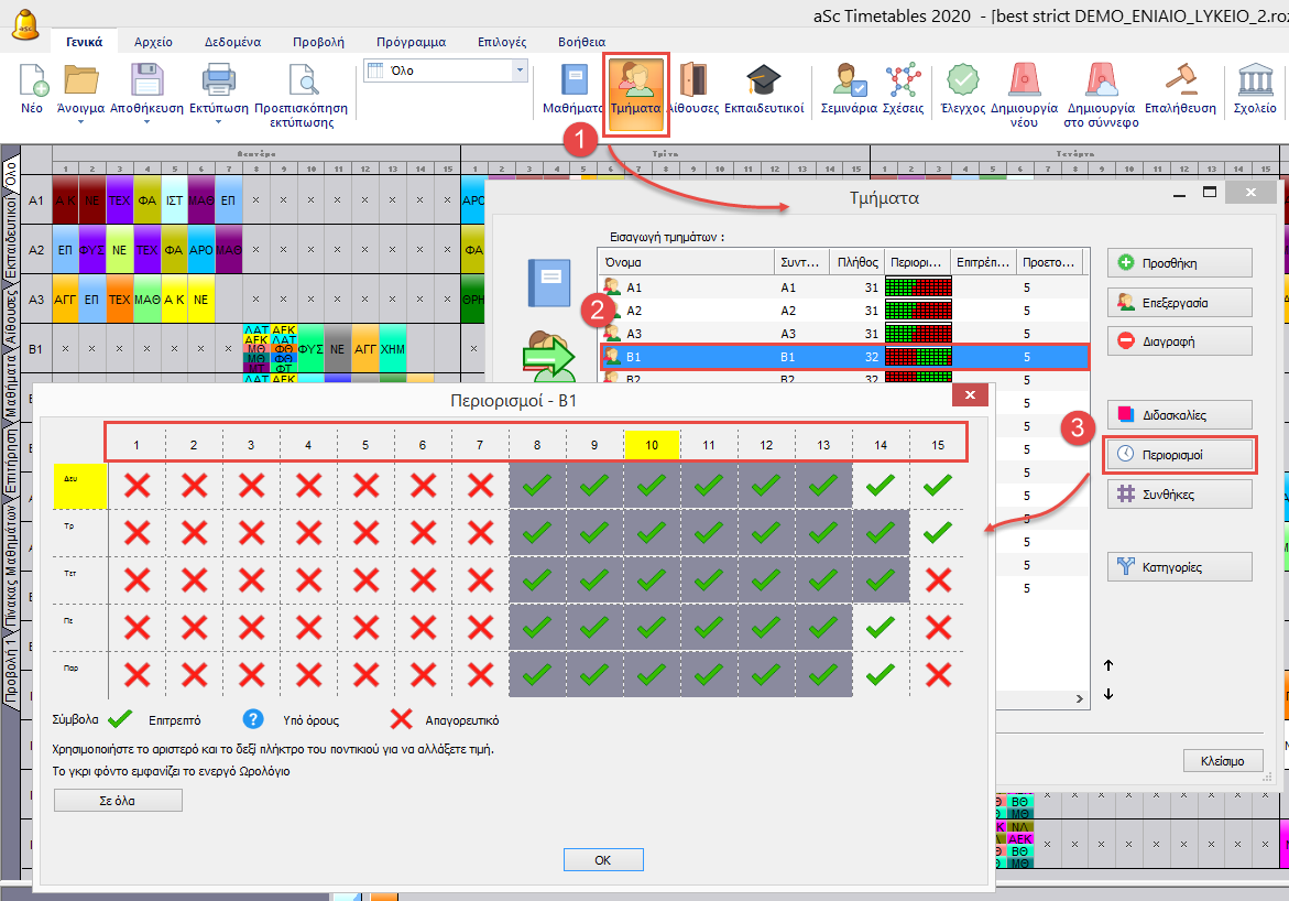 Εάν έχετε ήδη αποφασίσει ποια τμήματα θα έρχονται την πρωινή ζώνη και ποια την απογευματινή, τότε μπορείτε απλά να επεξεργαστείτε τις περιόδους μέσω τις λειτουργίας “Περιορισμοί”.