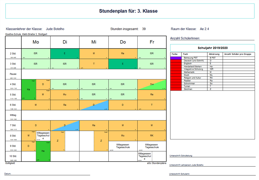 Wir haben auch ein Design Schulamt mit Unterschriftenfeld und Stundentabelle für Lehrerpläne, das wir Ihnen gerne zur Verfügung stellen:
