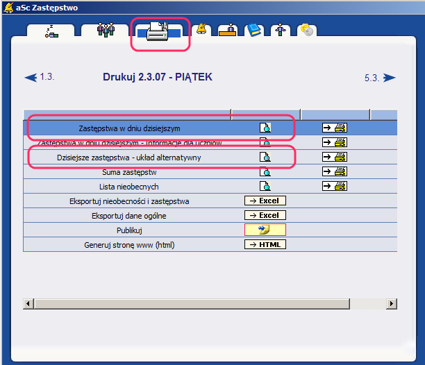 Program Zastępstwa umożliwia konfigurowanie wydruków.