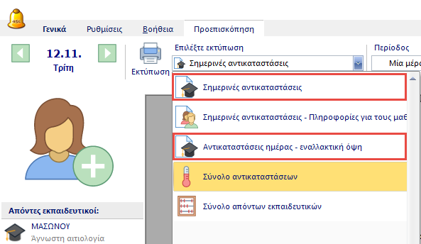 Εδώ, στην πρώτη στήλη εμφανίζεται ο εκπαιδευτικός που πρέπει να ενημερωθεί. Για παράδειγμα, στην παρακάτω εικόνα ο εκπαιδευτικός "Α" ενημερώνεται ότι: