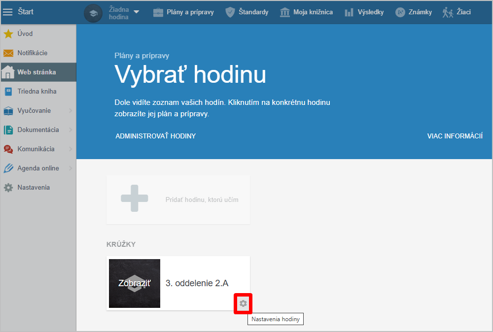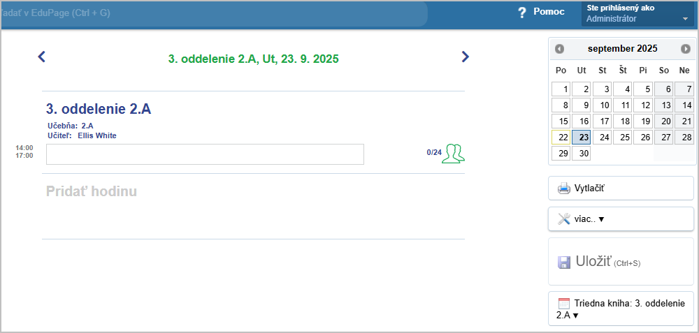Ako zobraziť hodiny pre ŠKD v triednej knihe?