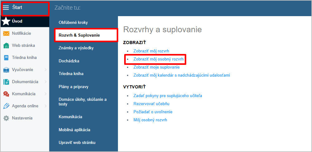 Prehľad hodín v osobnom rozvrhu si môžete pozrieť aj takto: