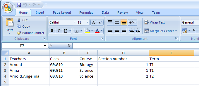 - if you want to import Terms/Weeks/Days, you will need to create these prior to import