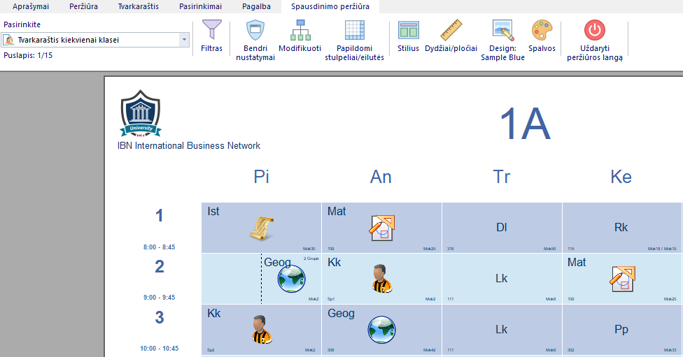 Kiekvienai disciplinų galima parinkti paveikslėlį. Toks tvarkaraštis turėtų patikti pradinių klasių mokiniams, nes jie galės jį greičiau suprasti. Be to, toks tvarkaraštis atrodys gražiau: