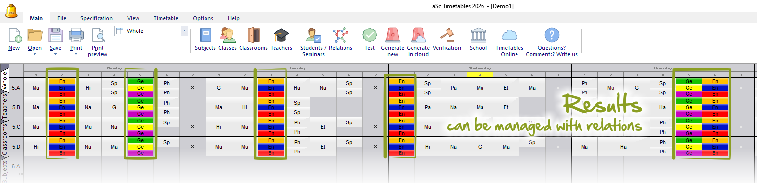 Lets take the case, when all students from the 5th grade are divided into three language groups - Beginners, Intermediate, and Advanced on their English lessons. Obviously each group is taught by the different teacher and is placed in the different classroom.