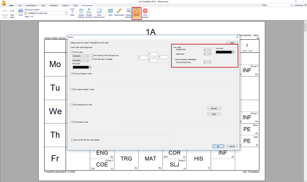 Then click on the icon Colors. A dialog appears where you can input line widhts: