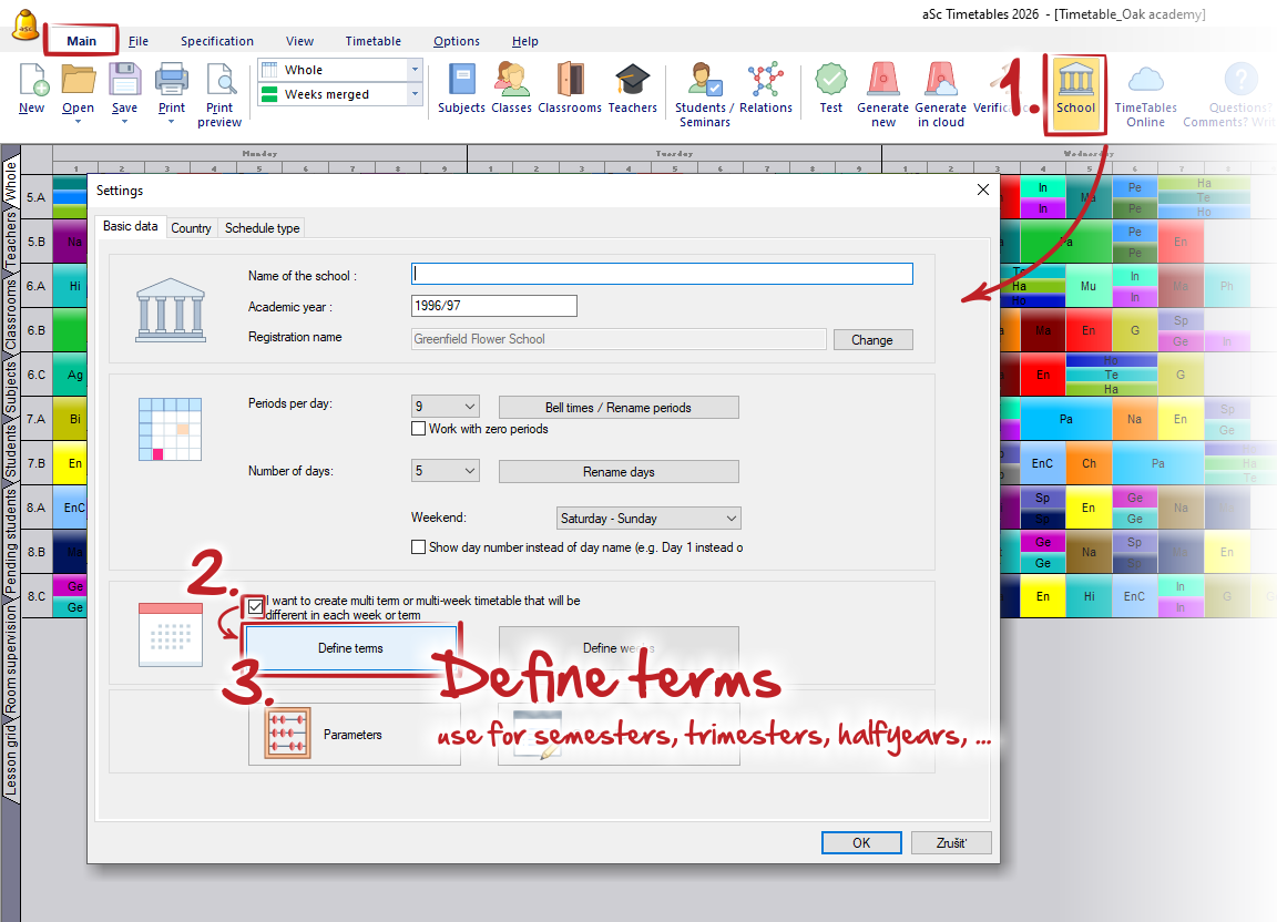 Here you can define your terms. Tick you have terms or weeks and then specify the appropriate amount of terms: