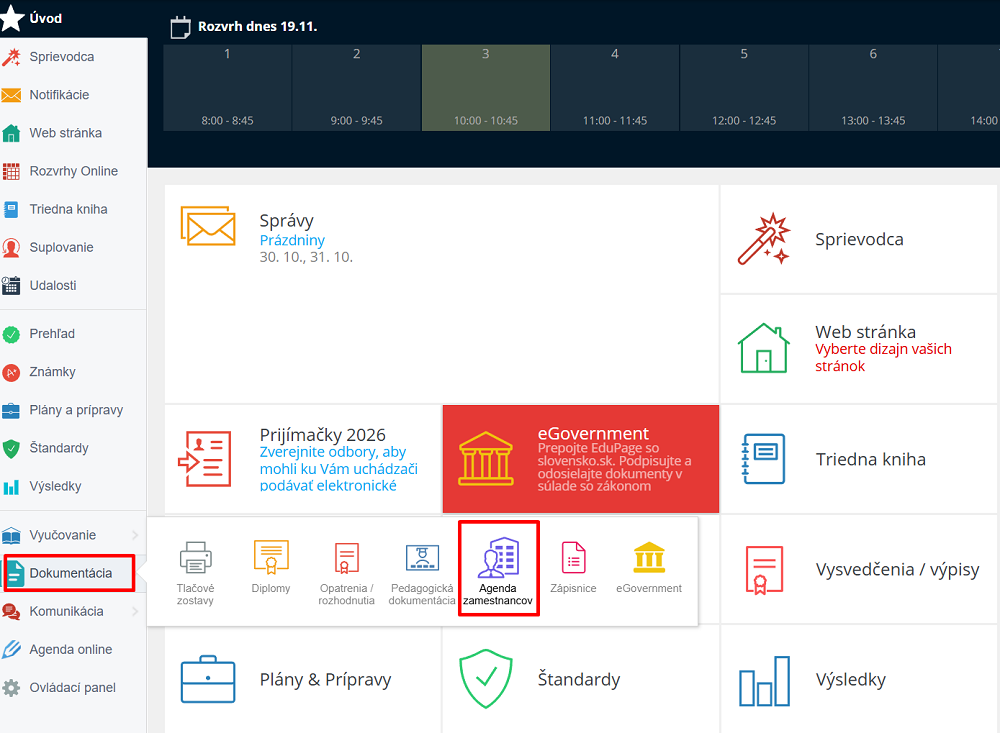 V ľavom menu zvoľte Dokumentácia/Agenda zamestnancov.