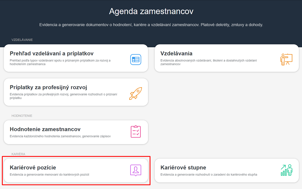 Generovanie menovacích dekrétov do kariérovej pozície
