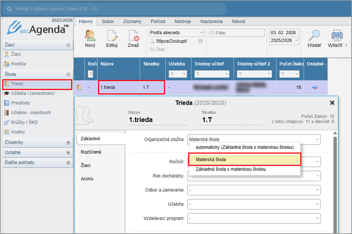 V pohľade sa pridá nový stĺpec Predškolák. Pomocou filtra si viete zobraziť iba predškolákov.