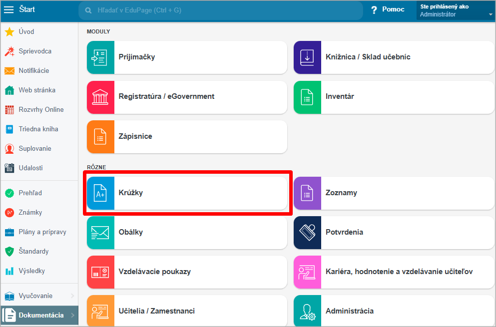 Tlačovú zostavu zoznam žiakov v krúžkoch nájdete v Dokumentácia/Tlačové zostavy/Krúžky.