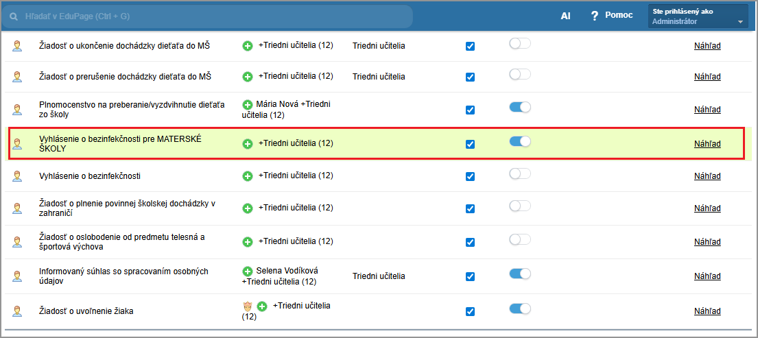 V module Žiadosti / Vyhlásenia sa prepnite do administračného režimu.