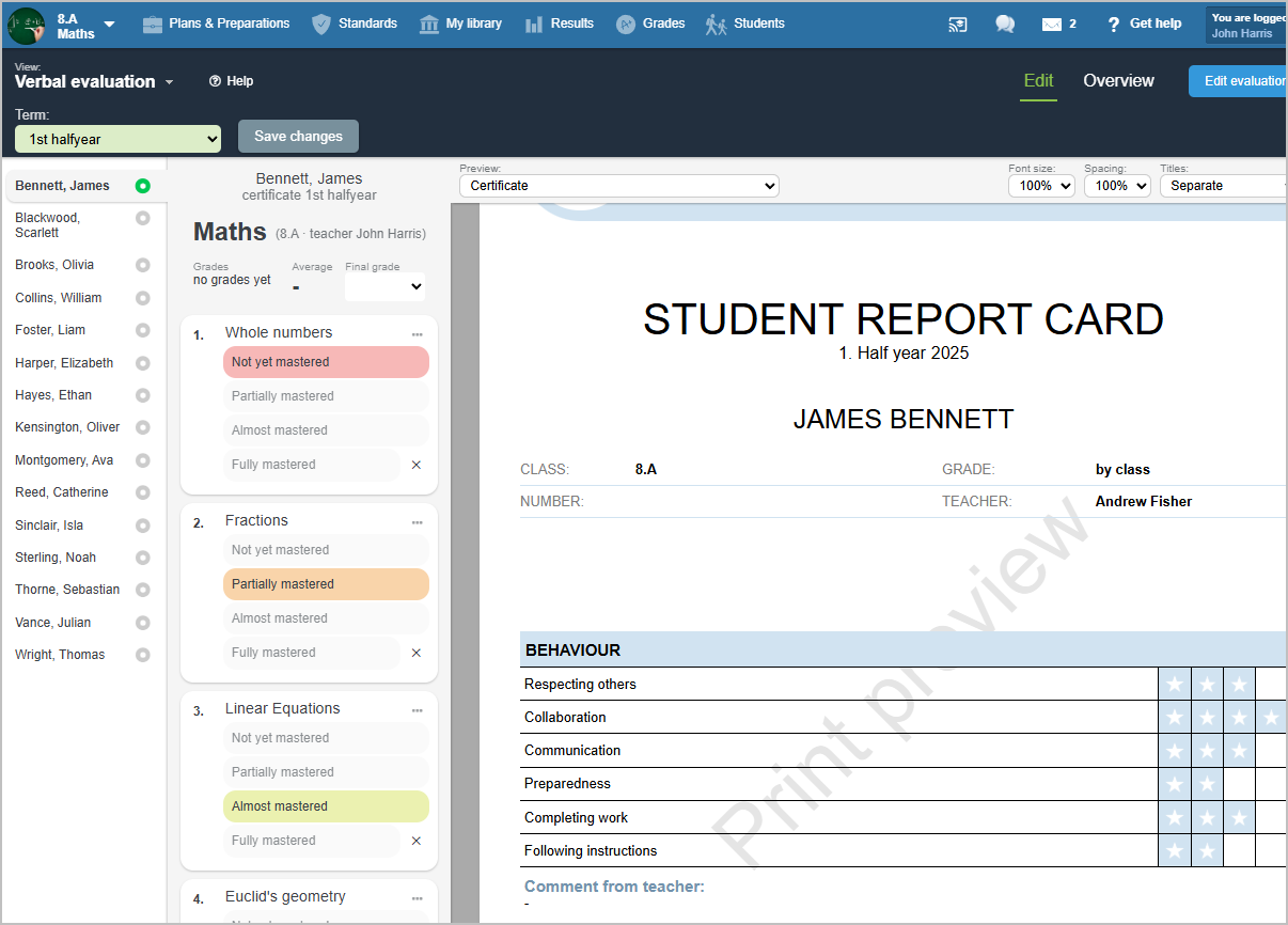 When entering evaluation of standards, you can choose certificate preview.