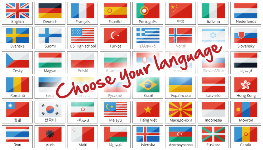 English Slovenčina Deutsch España Polish Russian Greek Lithuania Arabic Português Indonesian Croatian Hebrew Mongolian Bulgarian Thai