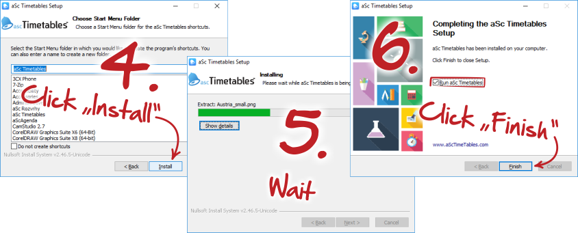 7. Wait until the files are copied. Then click Finish to run aSc TimeTables.