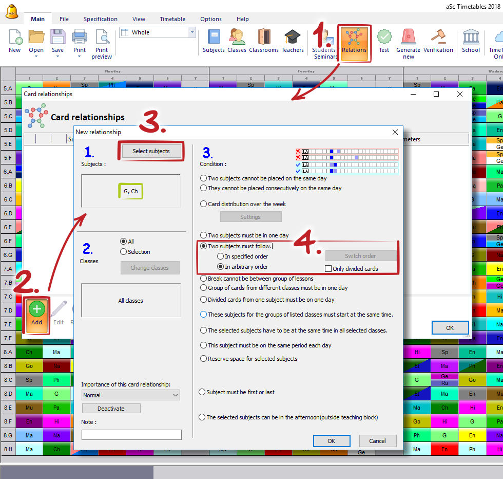 You can create a card relationship that defines that two subjects must follow one another (in arbitrary or specified order):