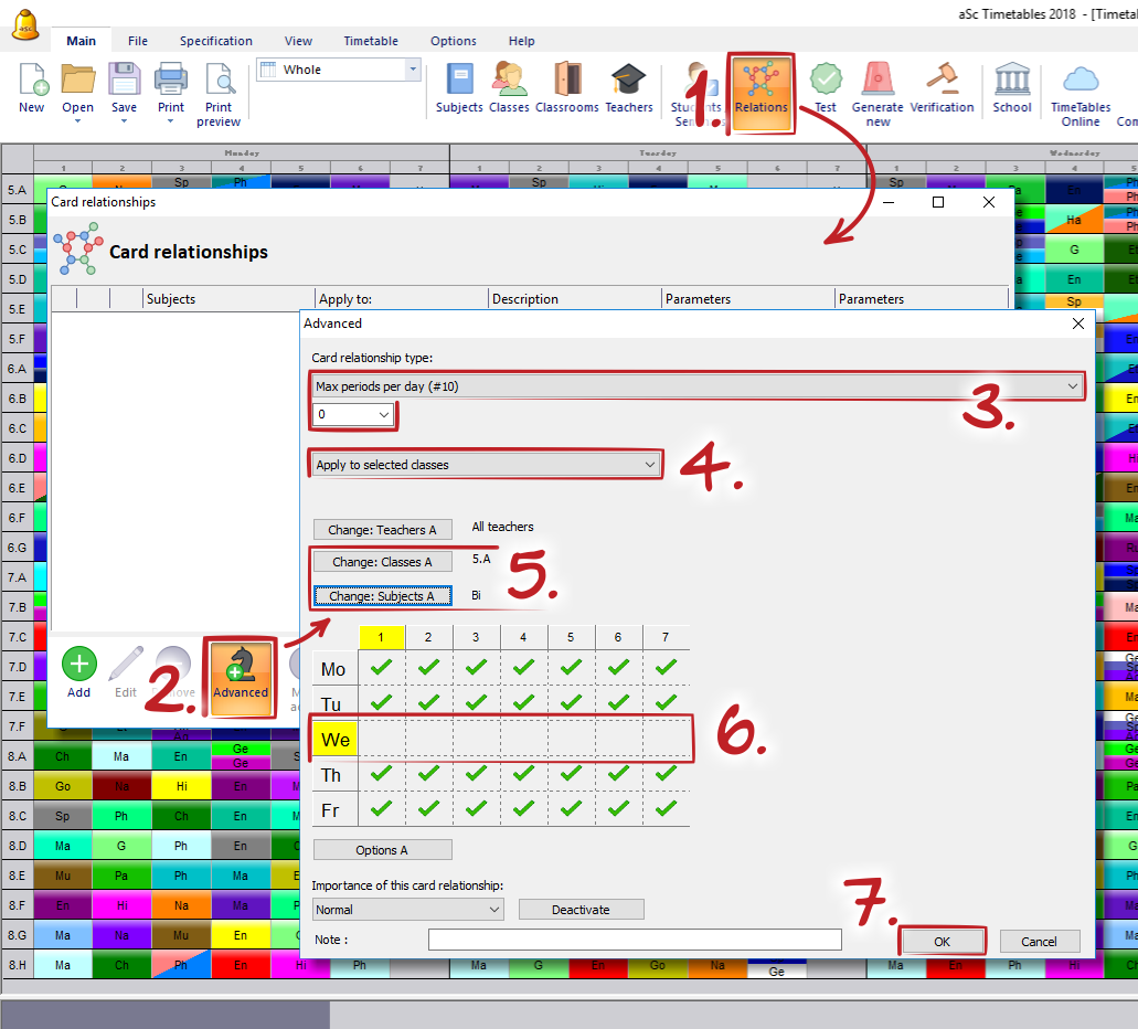 - the same cardrelationship can be used to specify that Bio cannot be on Monday, just select Monday in the weekly grid.