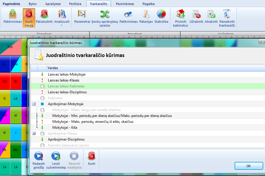 Patobulintas juodraštinio tvarkaraščio kūrimas, leisiantis geriau nustatyti galimas tvarkaraščio problemas. Dabar galima tiksliau nurodyti, kokius apribojimus juodraštiniame tvarkaraštyje norite palikti, kokius – palengvinti, o kokius - ignoruoti. Mokytojų ir klasių apribojimai išskaidyti į kelias dalis, kurios gali būti išjungtos arba įjungtos atskirai.