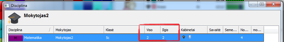 Tai galėjo atsitikti, jeigu įvedėte vieną dvigubo ilgio pamoką "Pamokų" lange taip: