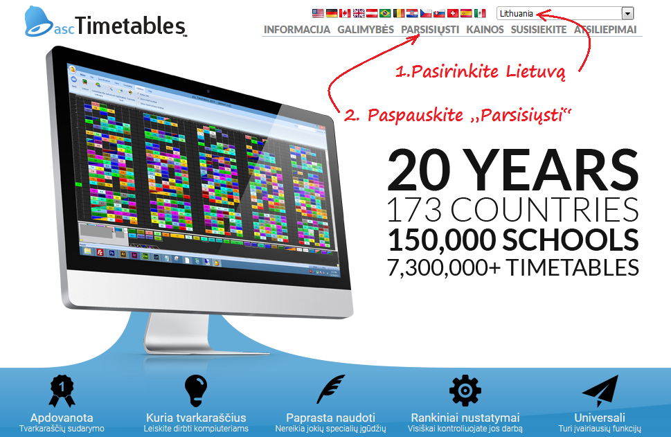 1. Atsiverskite http://www.aScTimeTables.com puslapį ir išsirinkite Lietuvą.