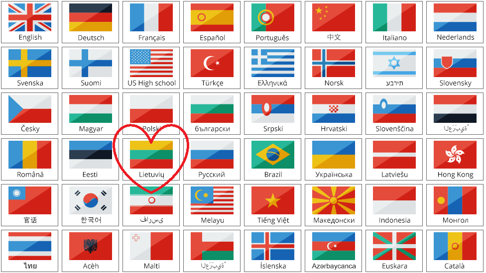 English Slovenčina Deutsch España Polish Russian Greek Lithuania Arabic Português Indonesian Croatian Hebrew Mongolian Bulgarian Thai
