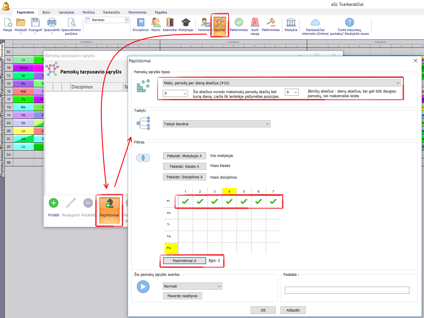 Svarbu pasirinkimuose nurodyti, kad ši sąlyga galioja dvigubo ilgio pamokoms.