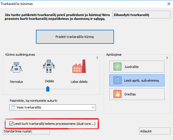 Tokiais atvejais rekomenduojame nepažymėti paukščiuku "Leisti daugiaprocesorinį kūrimą".