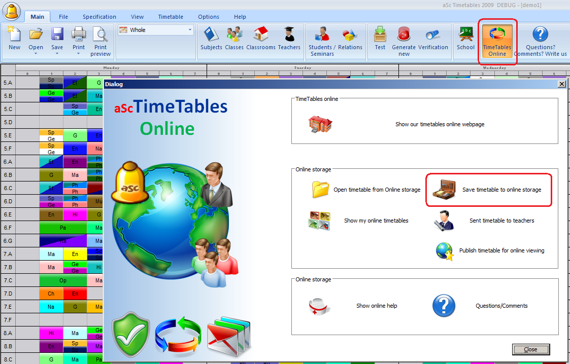 כדי לשמור את מערכת השעות שלך באופן מקוון, אתה צריך ללחוץ על "מערכת שעות מקוונת" בתפריט, ולאחר מכן בחר "שמור את ..."