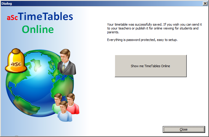 מרגע שמערכת השעות נשמרה בהצלחה תופיע תיבת דיאלוג סופית: