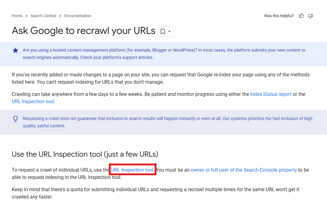 Kliknite na zvýraznený odkaz URL Inspection tool a následne na Inspect the page URL