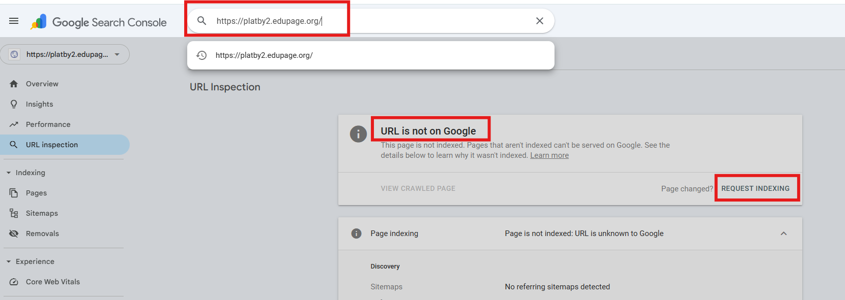 Skopírujte URL adresu vašej stránky z EduPage a vložte ju do novootvoreného okna google konzoly.