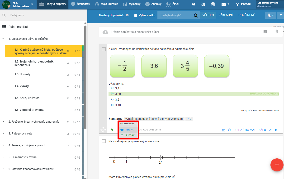 Štandardné nastavenie pri vytvorení karty je, že je viditeľná pre žiakov. Ak vytvárate test, ten je štandardne nastavený ako neviditeľný pre žiakov.