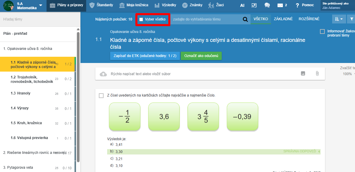 Nastavenie môžete urobiť aj pre viac kariet naraz, alebo pre všetky materiály, ktoré sú priradené k téme plánu takto.