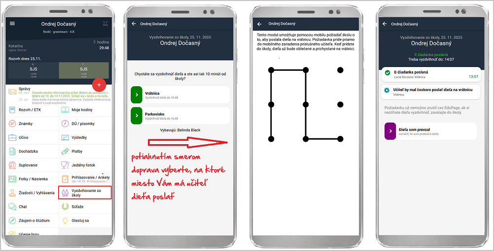 - Túto funkciu môžete použiť iba vtedy, keď niektorý z učiteľov v daný deň vyzdvihovanie aktivoval. Službu aktivujú až keď reálne sú na vyzdvihovanie pripravení, niekedy po obede.