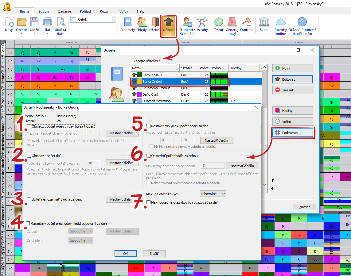 5. Nastaviť min./max. počet hodín za deň. Pozrite: Ako zadať učiteľovi min. a max. počet hodín za jeden deň?
