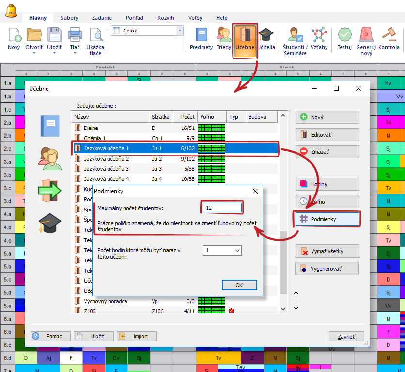 Obyčajne stačí prideliť hodiny triedy ku konkrétnym učebniam.