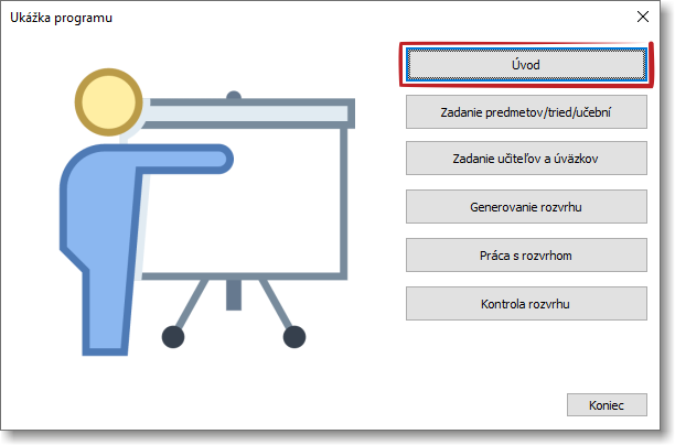 Ukážka programu pozostáva z niekoľkých častí. Kliknite na tlačítko, o ktorej časti programu sa chcete dozvedieť viac.