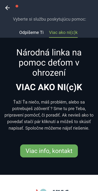 Uvidíš krátky popis, s čím ti vedia pomôcť a ako ich môžeš kontaktovať.