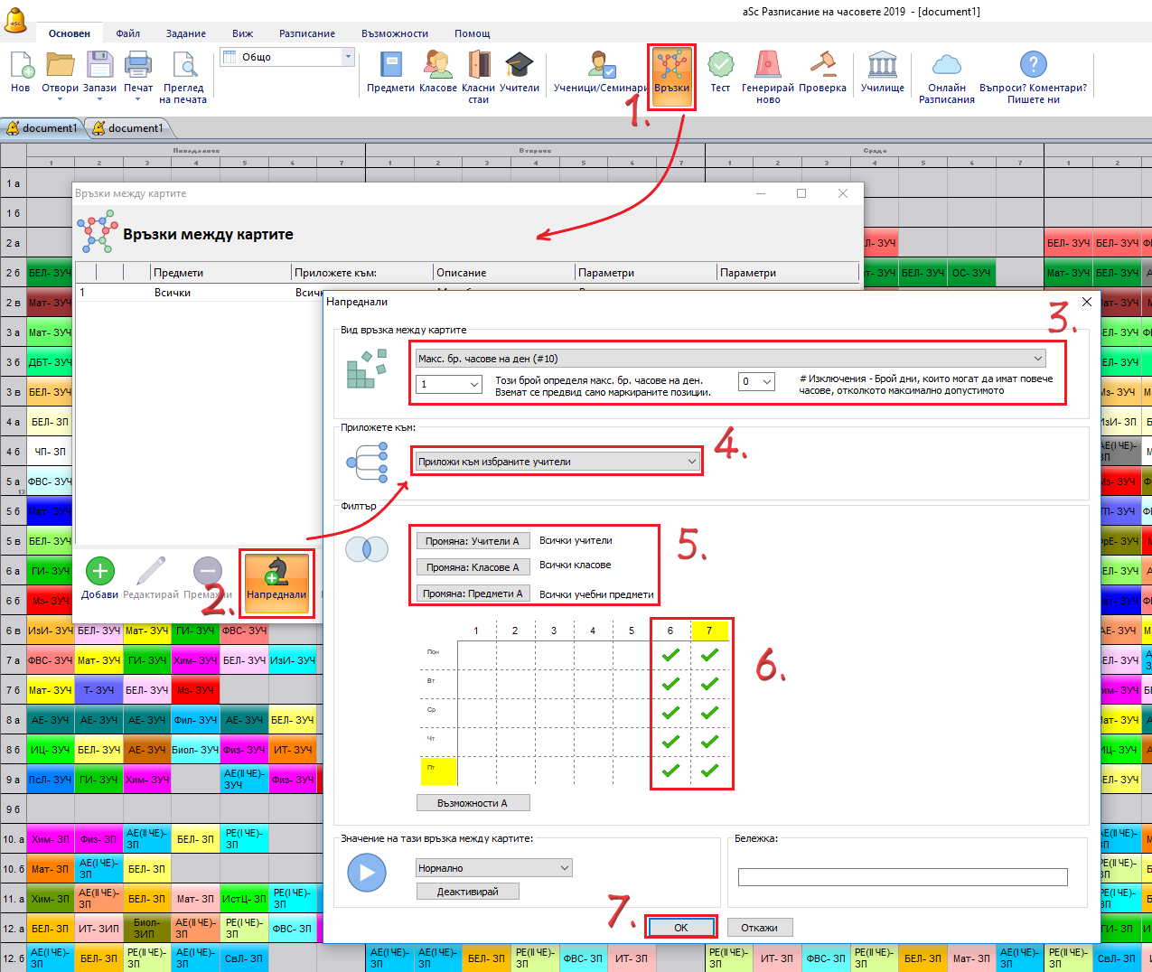 Изберете само онези два учебни часа в Неподходящо време - ограничението максимум 1 на ден се прилага само на онези часове, които са маркирани в зелено.