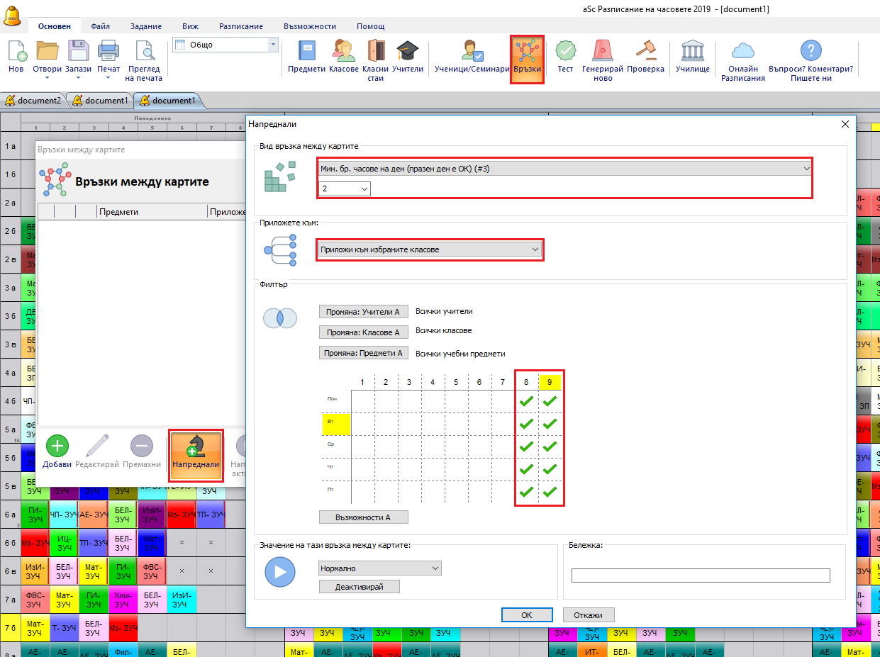 Моля, отворете меню – Основен/ Връзки/ Напреднали и настройте връзка в картата като тази на снимката: