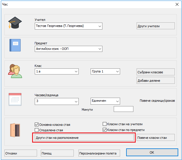 Или ръчно обозначете останалите налични класни стаи за тези часове: