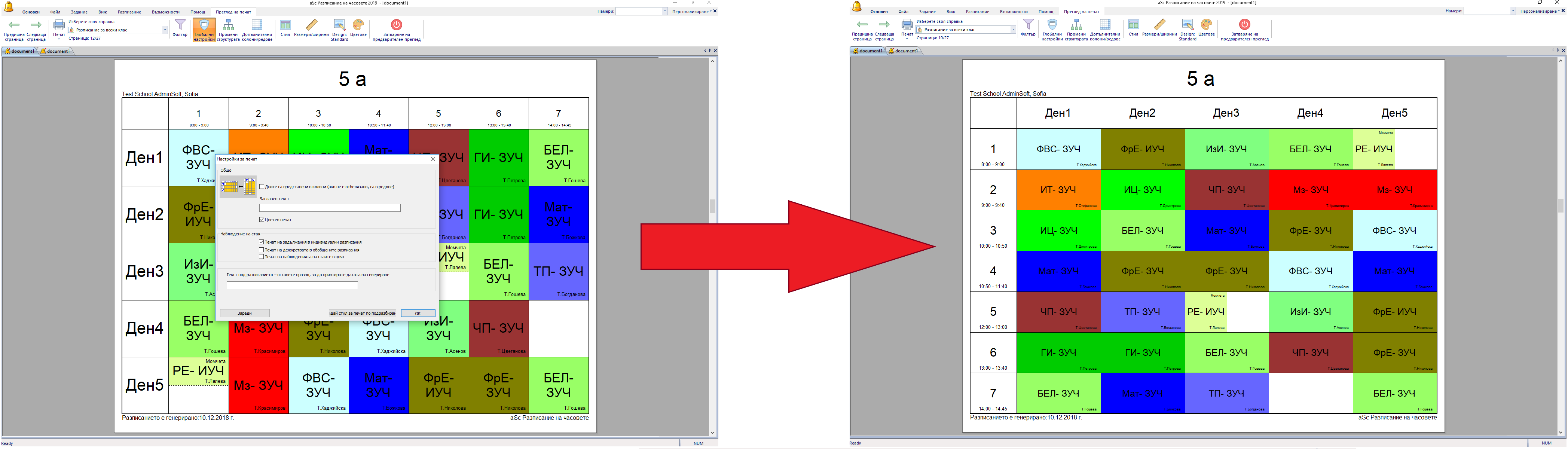 Всички разпечатки ще се променят съответно, ще можете да определите какво трябва да се принтира в редове и колони по-прецизно в: Променете структурата на разпечатката.