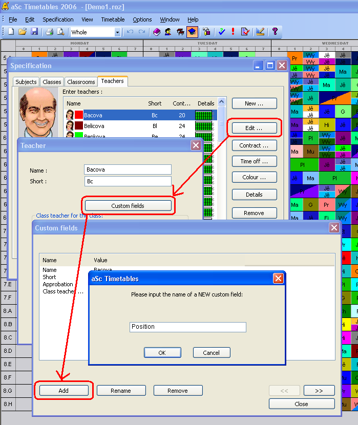 Puede definir e introducir sus casillas de usuario para cada profesor, clase, aula o para todo el horario.