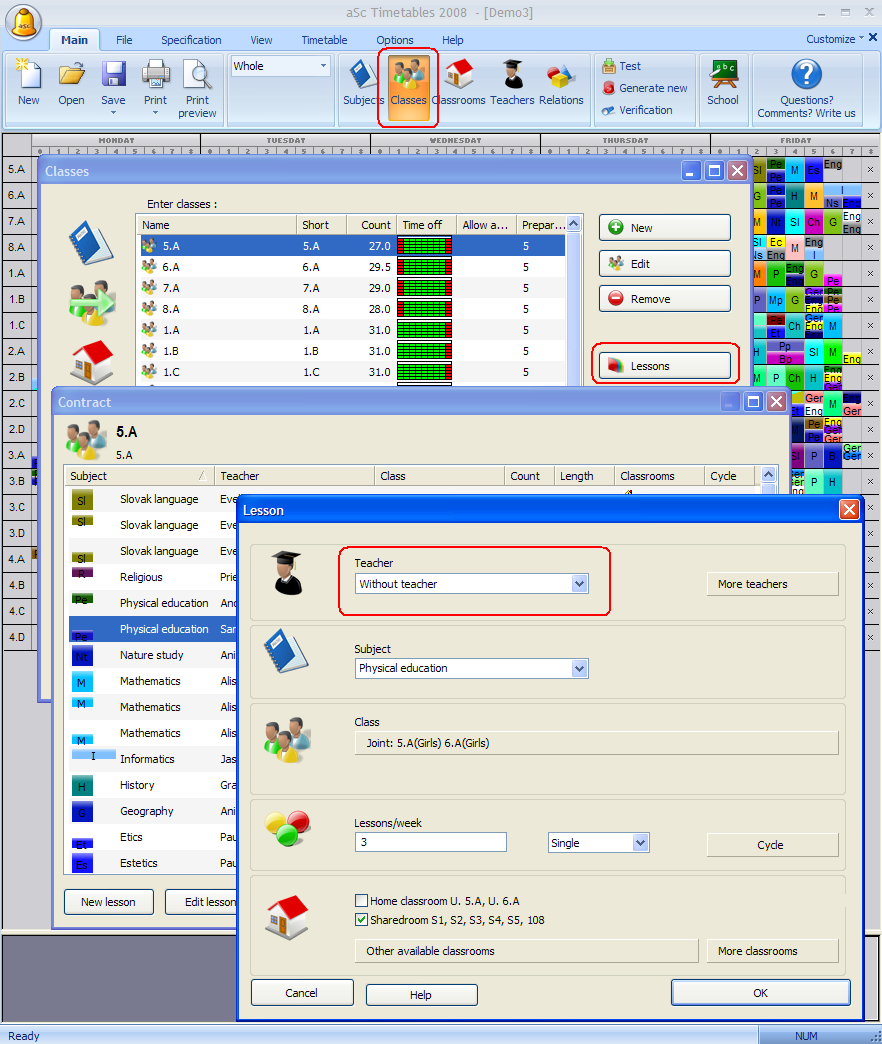 Puede hacerlo desde el diálogo Clases/Lecciones: