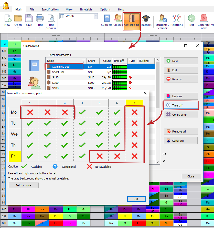 Tanto como otros objetos (profesores, clases...) puede usar tiempo libre para definir cuándo puede utilizar cierta aula.