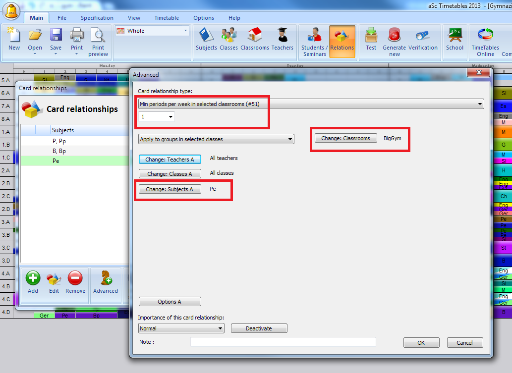 2. Then add the advanced card relationship nb. 51 "Min periods per week in selected classrooms".