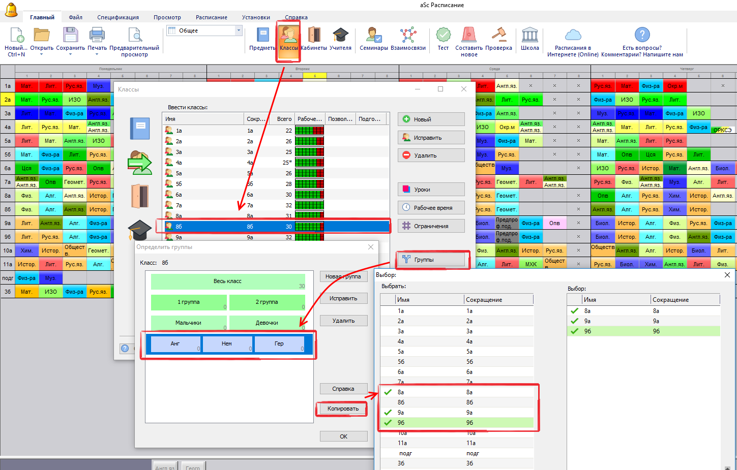 Как копировать разделы / группы из одного класа другому