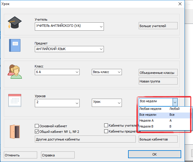 Для каждого урока вы можете определить, что этот урок может быть в день А или B. Если укажите день А, он будет проходить в понедельник, среду и пятницу: