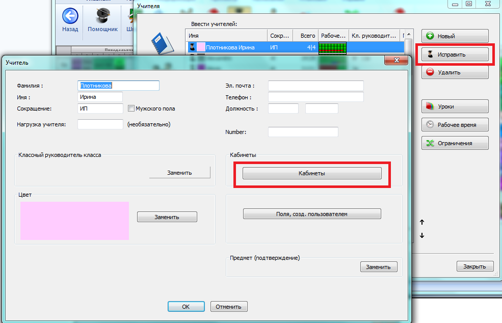 Либо вручную указать другие доступные кабинеты для этих уроков: